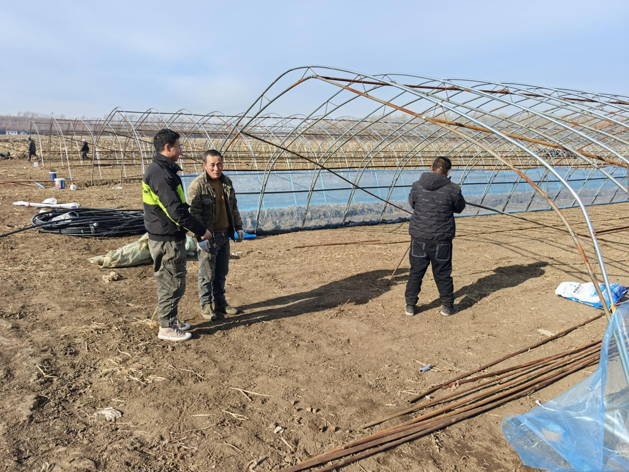 近日,北大荒农业股份八五六分公司水稻育秧大棚修复工程紧锣密鼓推进中,为全年水稻生产按下“加速键”。