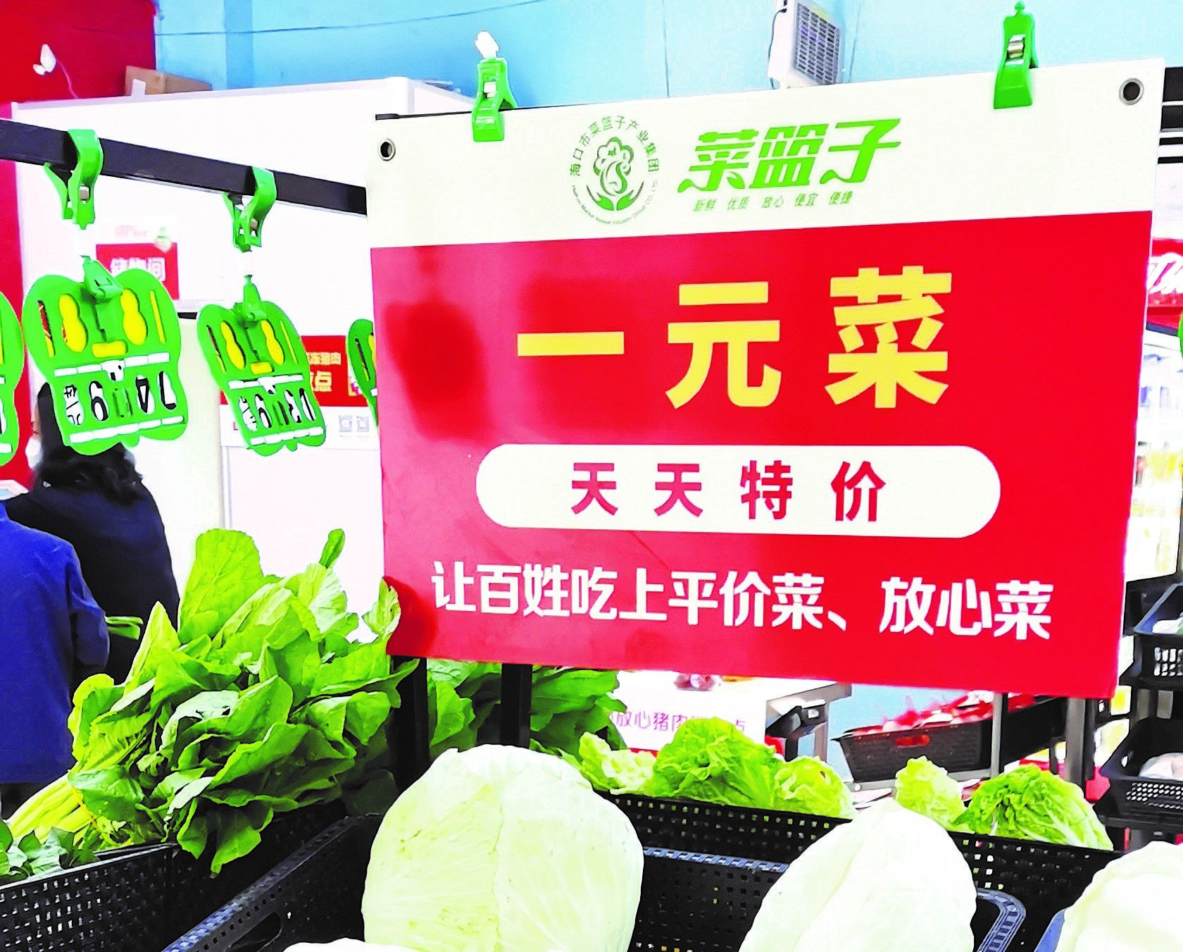 在海口市菜篮子集团的直营店,全年每天都有三种“一元菜”,品种根据季节有所不同。
